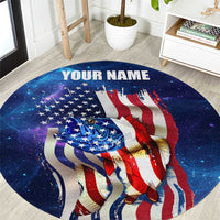 Bass Fishing Round Carpet American Flag Patriotic and Cosmic Galaxy in Blue Red