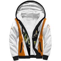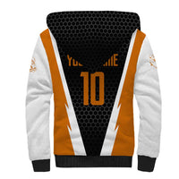 Bass Fishing Sherpa Hoodie Jumping Largemouth Fish on Black Hex Pattern and Orange White Lightning Accents TS04