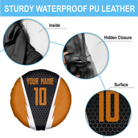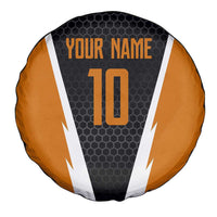 Bass Fishing Spare Tire Cover Jumping Largemouth Fish on Black Hex Pattern and Orange White Lightning Accents