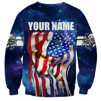Bass Fishing Sweatshirt American Flag Patriotic and Cosmic Galaxy in Blue Red TS04