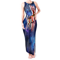 Bass Fishing Tank Maxi Dress American Flag Patriotic and Cosmic Galaxy in Blue Red TS04