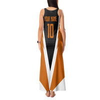 Bass Fishing Tank Maxi Dress Jumping Largemouth Fish on Black Hex Pattern and Orange White Lightning Accents TS04