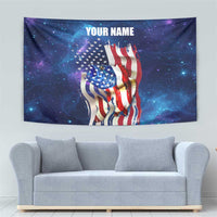 Bass Fishing Tapestry American Flag Patriotic and Cosmic Galaxy in Blue Red