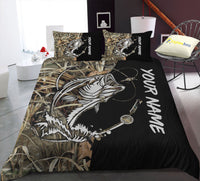 Beautiful Bass Fishing Tattoo Camo Custom Fishing Bedding Sets, Personalized Gifts For Fishing Lovers, Fishing Bedding Set