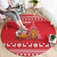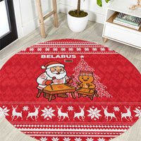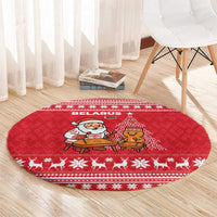 Belarus Christmas Round Carpet with Santa Gingerbread Playing Chess National Emblem and Nordic Pattern Design