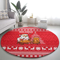 Belarus Christmas Round Carpet with Santa Gingerbread Playing Chess National Emblem and Nordic Pattern Design TS04