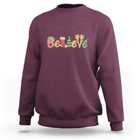 Believe Christmas Sweatshirt Santa Claus Reindeer Candy Cane Groovy Xmas TS02