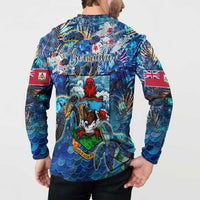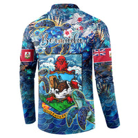 Bermuda Button Sweatshirt Sea Turtle Tropical Pattern DT02