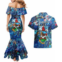 Bermuda Couples Matching Mermaid Dress and Hawaiian Shirt Sea Turtle Tropical Pattern DT02