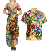 Bermuda Couples Matching Summer Maxi Dress and Hawaiian Shirt Geographic Coordinate Anchor - Turlte Tropical DT02