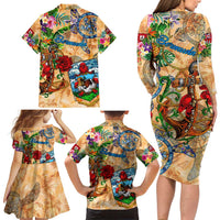 Bermuda Family Matching Long Sleeve Bodycon Dress and Hawaiian Shirt Geographic Coordinate Anchor - Turlte Tropical DT02
