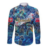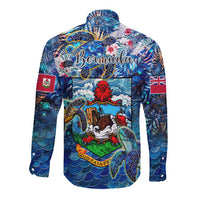 Bermuda Long Sleeve Button Shirt Sea Turtle Tropical Pattern DT02