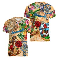 Bermuda Women V-Neck T-Shirt Geographic Coordinate Anchor - Turlte Tropical DT02