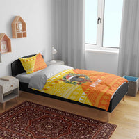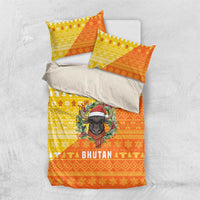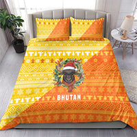 Bhutan Christmas Bedding Set with Takin Reindeer Antlers Santa Hat and Yellow Orange Holiday Pattern