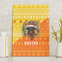 Bhutan Christmas Canvas Wall Art with Takin Reindeer Antlers Santa Hat and Yellow Orange Holiday Pattern
