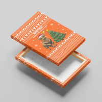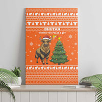 Bhutan Christmas Canvas Wall Art with Takin Santa Hat Christmas Tree and Snowflake Pattern in Orange