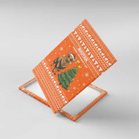 Bhutan Christmas Canvas Wall Art with Takin Santa Hat Christmas Tree and Snowflake Pattern in Orange TS04