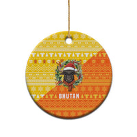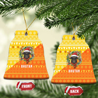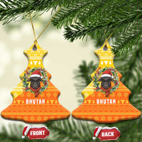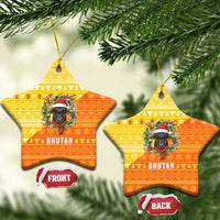 Bhutan Christmas Ceramic Ornament with Takin Reindeer Antlers Santa Hat and Yellow Orange Holiday Pattern
