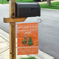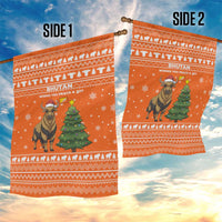 Bhutan Christmas Garden Flag with Takin Santa Hat Christmas Tree and Snowflake Pattern in Orange