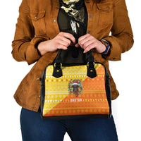 Bhutan Christmas Shoulder Handbag with Takin Reindeer Antlers Santa Hat and Yellow Orange Holiday Pattern TS04