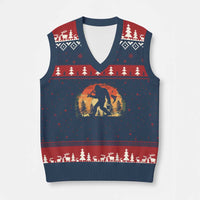 Bigfoot Fishing V-Neck Knit Sweater Vest Funny Retro Sasquatch Fisherman Dad