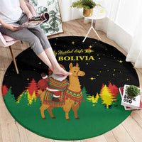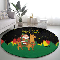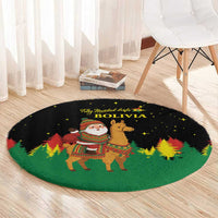 Bolivia Christmas Round Carpet with Santa Claus Llama Andean Outfit and Festive Tree Design