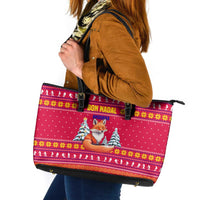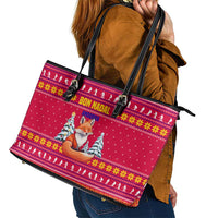 Bon Nadal Andorra Christmas Leather Tote Bag with Fox Snowy Trees and Andorran Flag