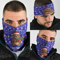 Bon Nadal Andorra Christmas Neck Gaiter Holiday Bear, Snowflakes, Paw Prints & Winter