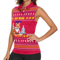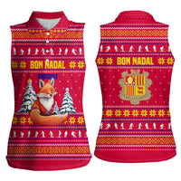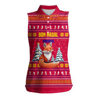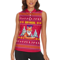 Bon Nadal Andorra Christmas Women Sleeveless Polo Shirt with Fox Snowy Trees and Andorran Flag