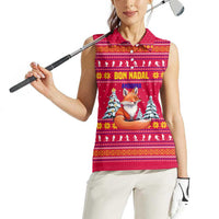 Bon Nadal Andorra Christmas Women Sleeveless Polo Shirt with Fox Snowy Trees and Andorran Flag TS04