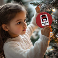 Boricua Girl Christmas Ornament Messy Bun Puerto Rican Flag Hibiscus Flower TS10