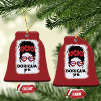 Boricua Girl Christmas Ornament Messy Bun Puerto Rican Flag Hibiscus Flower
