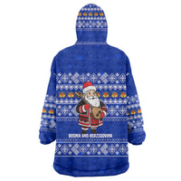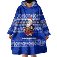 Bosnia and Herzegovina Christmas Wearable Blanket Hoodie with Santa Playing Traditional Instrument and Blue Snowflake Pattern