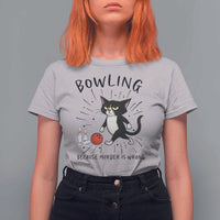 Bowling Because Murder Is Wrong T Shirt For Women Funny Cat Lovers Gift