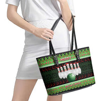 Bowling Christmas Leather Tote Bag Merry Bowlmas DT05
