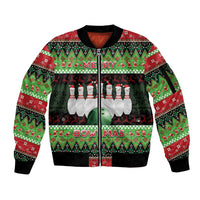 Bowling Christmas Sleeve Zip Bomber Jacket Merry Bowlmas DT05