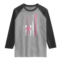 Breast Cancer Awareness Raglan Shirt Back The Pink Warrior American Flag TS11