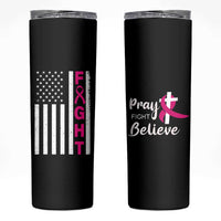 Breast Cancer Awareness Skinny Tumbler Christian Gift Pink Ribbon USA Flag Pray Fight Believe TB10