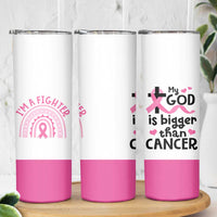 Breast Cancer Awareness Skinny Tumbler Pink Ribbon My God is Stronger Than Cancer Christian Gift