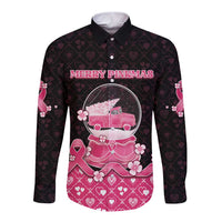 Breast Cancer Christmas Long Sleeve Button Shirt Merry Pinkmas DT05