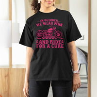 Breast Cancer Motorcycle T Shirt For Women In October We Wear Pink Ride For A Cure TS10