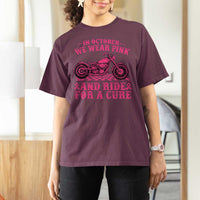 Breast Cancer Motorcycle T Shirt For Women In October We Wear Pink Ride For A Cure