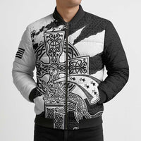 The Perfect Blend of Warmth & Style — The Brittany Celtic Cross Bomber Puffer Jacket Celtic Pattern by Wonder Print Shop