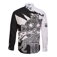 Brittany Celtic Cross Long Sleeve Button Shirt Celtic Pattern LT18