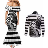 Brittany Ermine Celtic Couples Matching Mermaid Dress and Long Sleeve Button Shirt Black Celtic Triskels