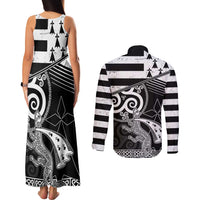 Brittany Ermine Celtic Couples Matching Tank Maxi Dress and Long Sleeve Button Shirt Black Celtic Triskels LT18