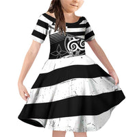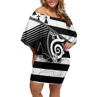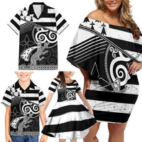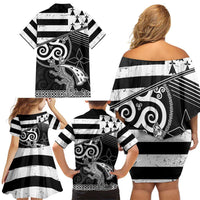 Brittany Ermine Celtic Family Matching Off Shoulder Short Dress and Hawaiian Shirt Black Celtic Triskels