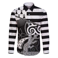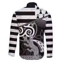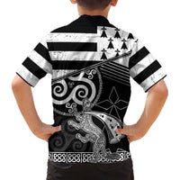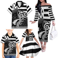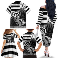 Brittany Ermine Celtic Family Matching Off The Shoulder Long Sleeve Dress and Hawaiian Shirt Black Celtic Triskels