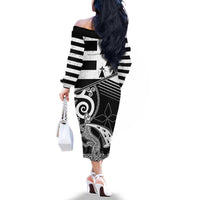 Brittany Ermine Celtic Family Matching Off The Shoulder Long Sleeve Dress and Hawaiian Shirt Black Celtic Triskels LT18
