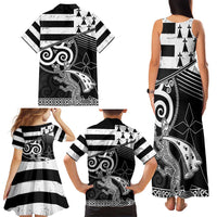 Brittany Ermine Celtic Family Matching Tank Maxi Dress and Hawaiian Shirt Black Celtic Triskels
